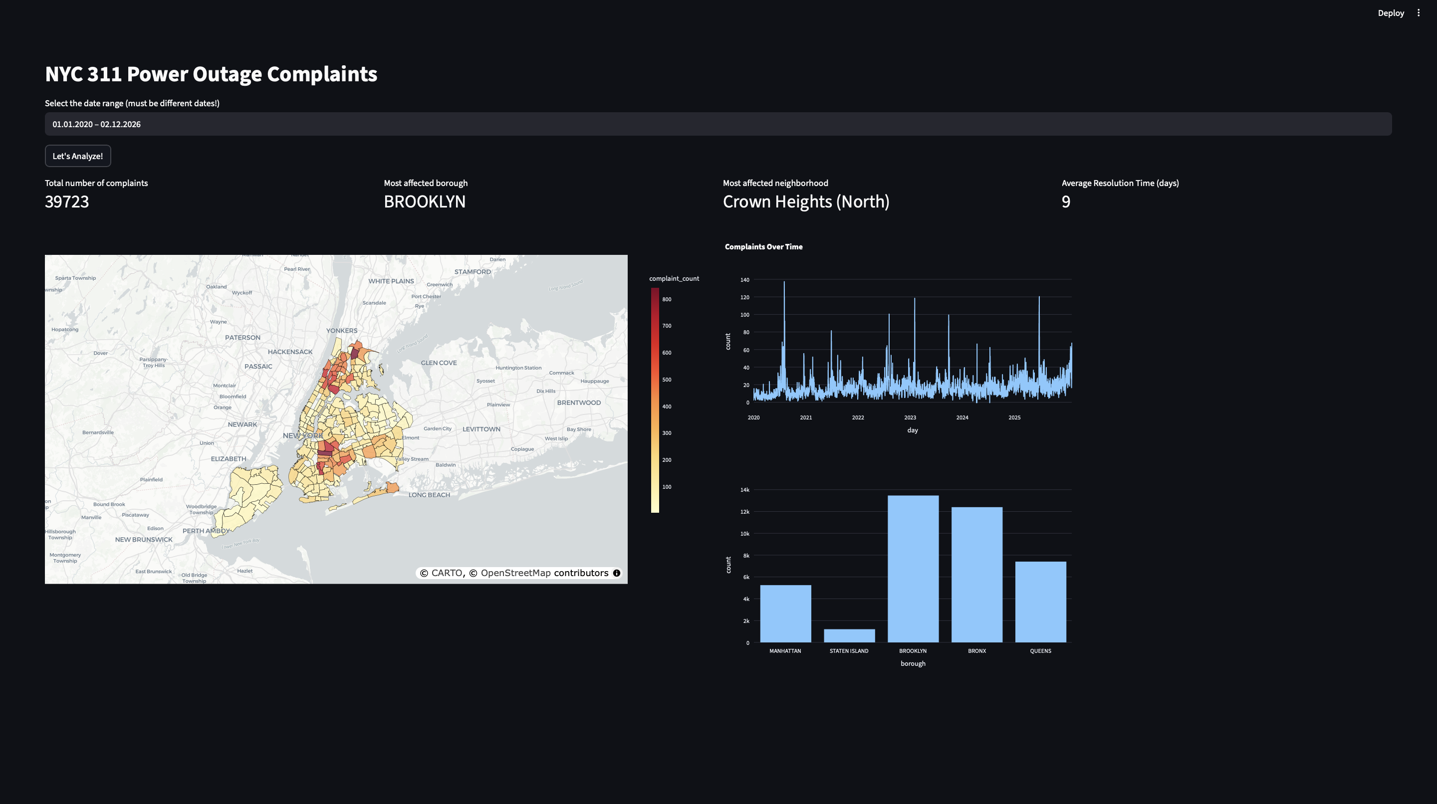 A data-driven look at NYC power outage reports—trends over time, neighborhood hotspots, and key insights.